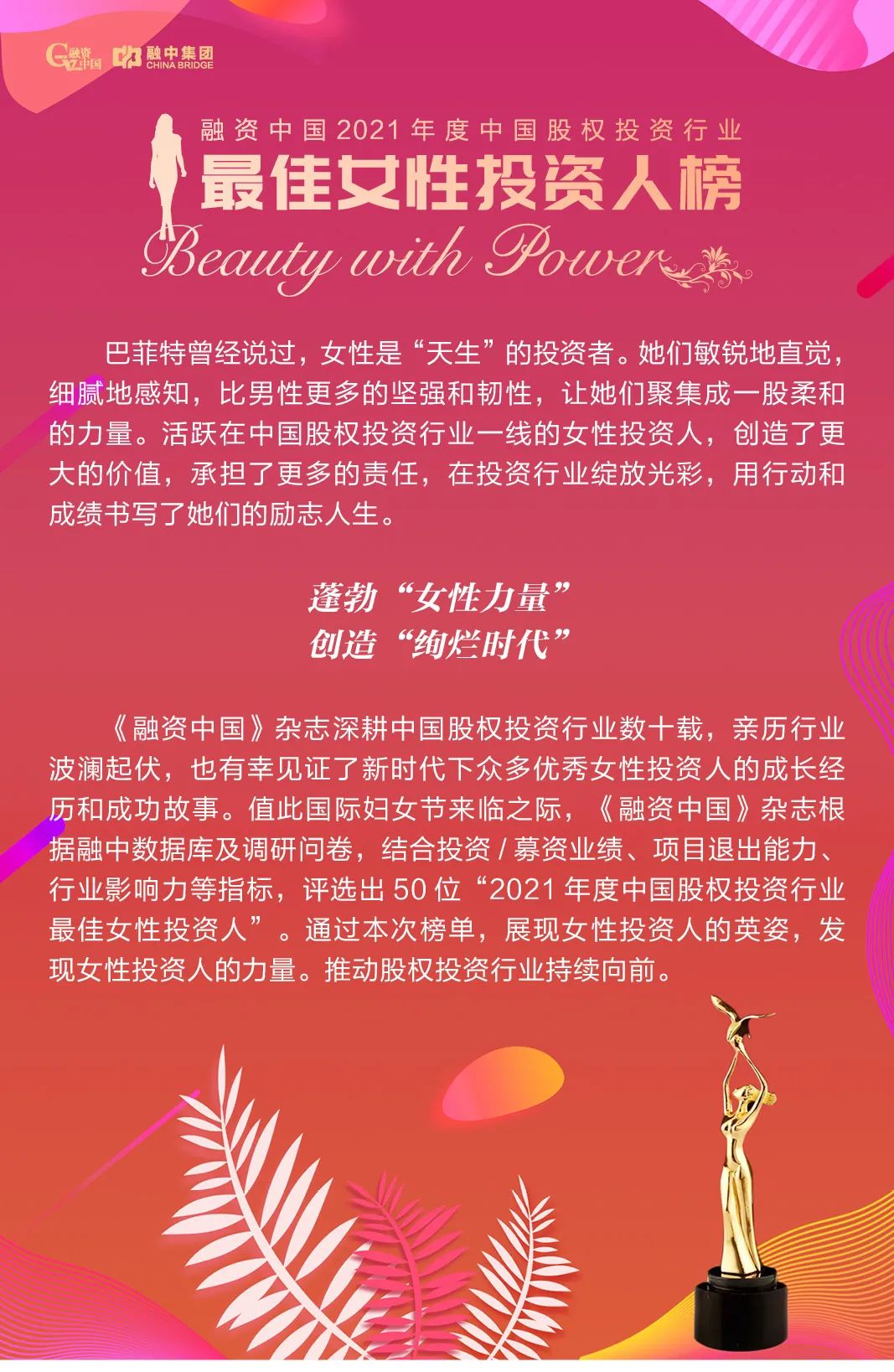 華麗揭曉|融資中國2021年度最佳女性投資人榜單重磅發(fā)布