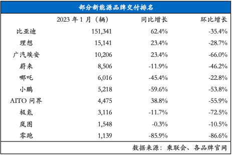部分新能源品牌具體交付量如下: